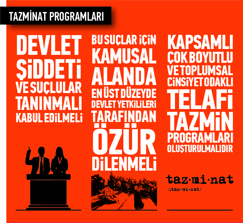 AK Parti’nin 2015 seçim beyannamesinde tazminat programlarına ilişkin tek vaadi, “terörden etkilenen yörelerin ekonomik ve sosyal rehabilitasyonuna dönük çalışmaları hızlandırarak devam ettirme” olmuştu. Biz Yılmaz Ensaroğlu’na devlet kaynaklı ihlal ve zararlara yönelik somut tazminat önerilerini sorduğumuzda “Hiçbir tazminat kaybettiklerimizi geri getirmese de her mağdurun zararının kısmen de olsa telafisine” çalışacaklarını söyledi. Kayıp yakınları ve toplum nezdinde devletin özür dilemesine ilişkinse, özür’ün yüzleşmede araçlardan sadece biri olduğunu, taraflar ve toplumun hangi yöntem ve aracı tercih edeceklerine göre hareket etmek gerektiğini belirtti.